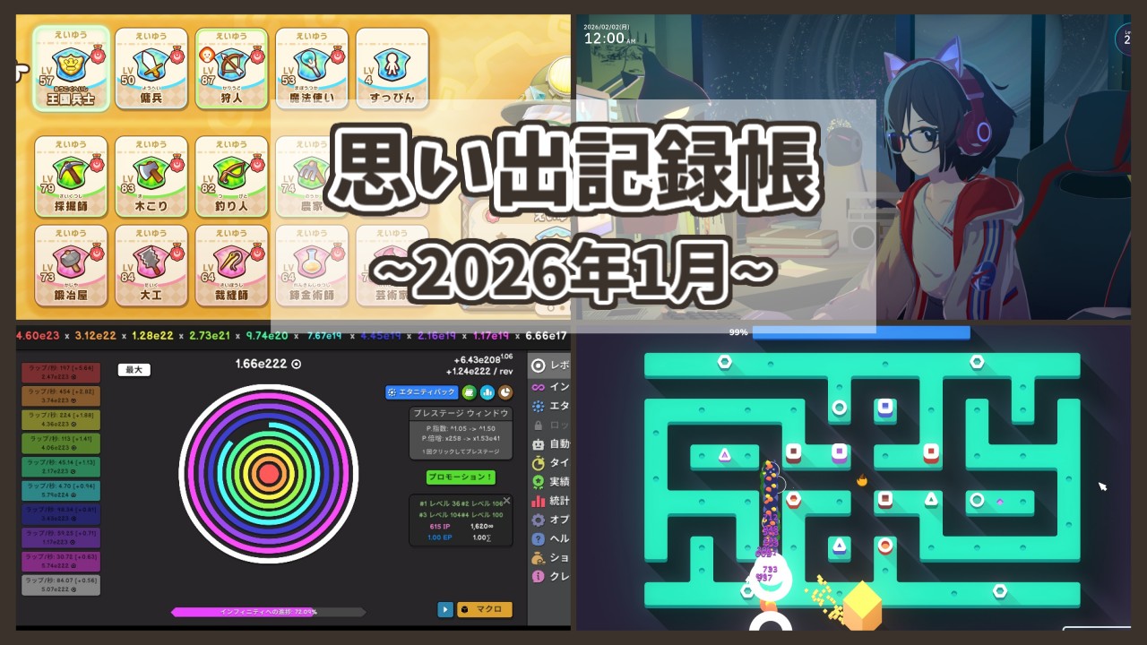 2026年1月は、積みゲーを消化しつついくつか新しいゲームも始めた1か月でした。ここ数か月スプラ3を全然していなかったけど、先日のアップデートで大幅な変更がありちょっと再燃中。