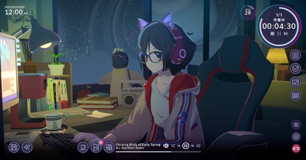 1月上旬からChill with You : Lo-Fi Storyを開始しました。昨年話題になった放置ゲームで、少女のサトネと一緒に作業を進めると、物語が進んでいきます。