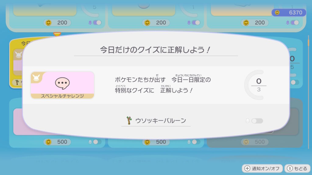 計3回正解したらチャレンジ達成となり、アイテム「ウソッキーバルーン」を入手できます。