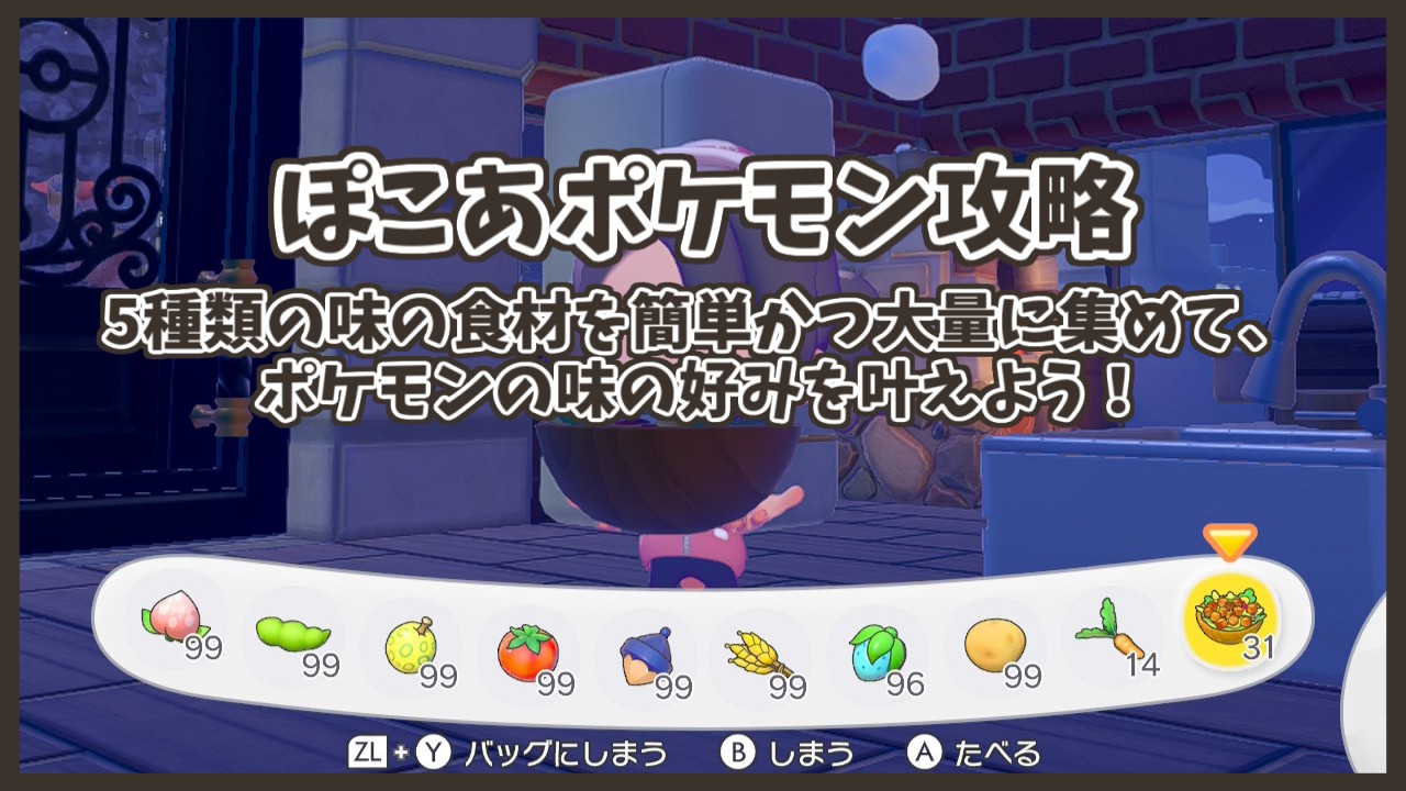 【ぽこあポケモン攻略】5種類の味の食材を簡単かつ大量に集めて、ポケモンの味の好みを叶えよう!