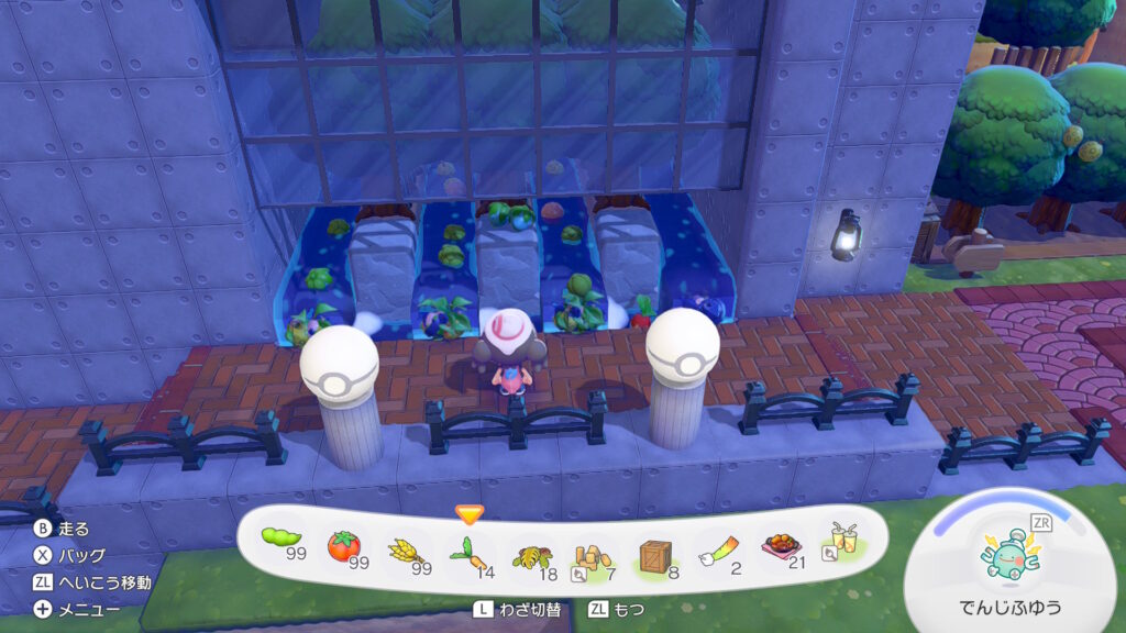 木の実はポケモン公式島であるポケモン情報局タウン(PXQC G03S)で各種実のなる木を写真で撮影し、ポケモンセンターでレアポケメタルを用いて複製することで集められます。野菜はストーリーをクリアする頃には全種苗が集まっているでしょう。