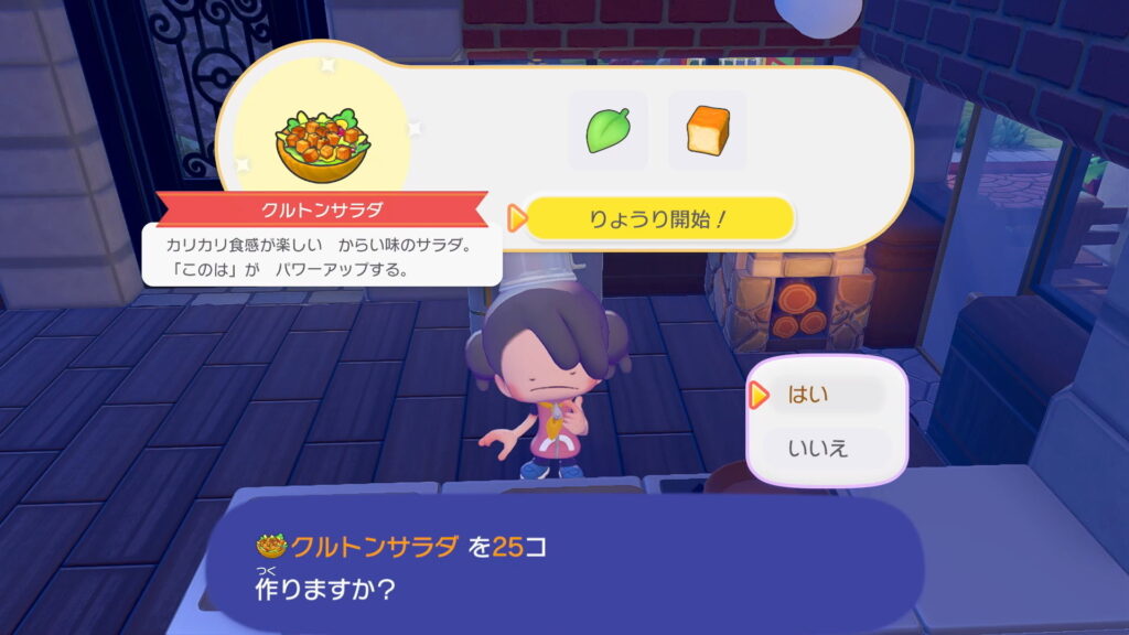 そこでオススメなのがクルトンサラダです。パンとはっぱを料理することで作ることができるため、実質コムギとはっぱのみで量産することができます。また、クルトンサラダをこけカビゴンにお供えすると、生息地にポケモンがかなり現れやすくなる効果が付与されるため、そういった観点でも量産して損はないです。