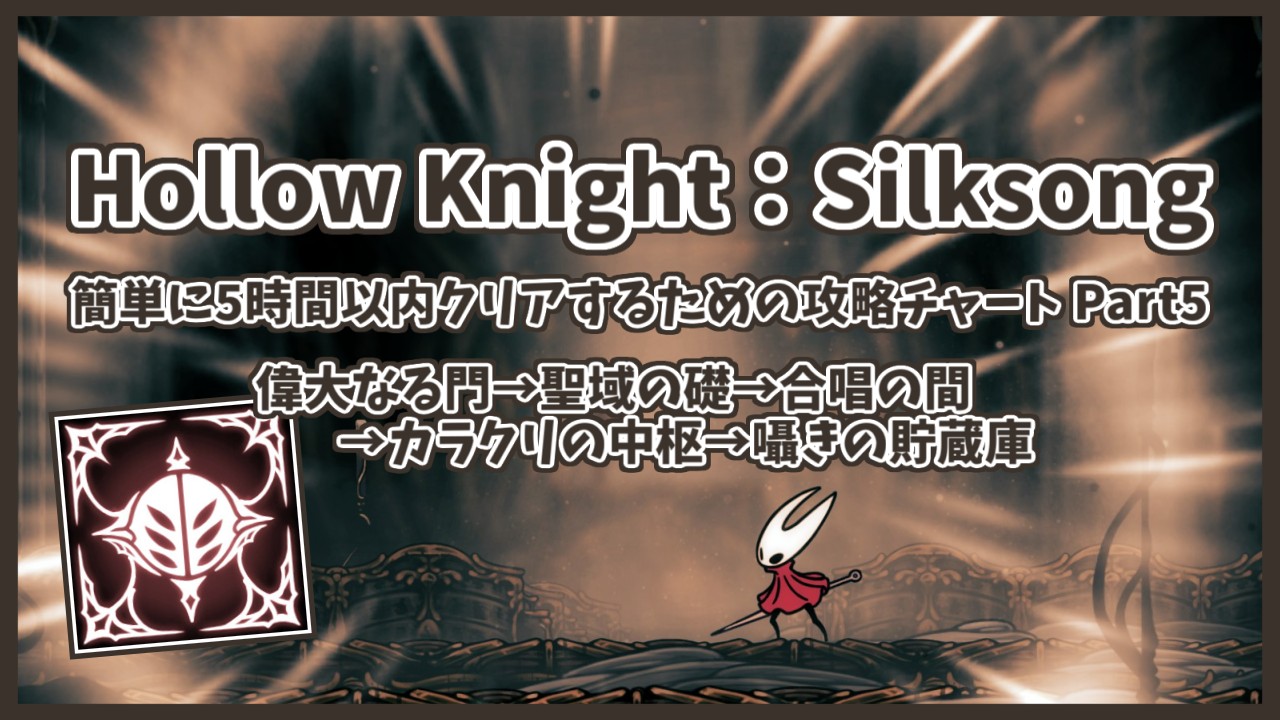 Part1では骨溜まりの麓→脊髄の道→深層の港まで解説しています。また、実績「スピードラン」の概要や、本解説における注意点もPart1で記載していますので、そちらをご覧ください。