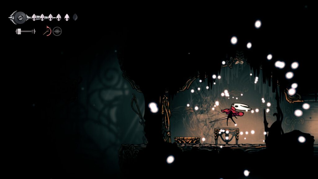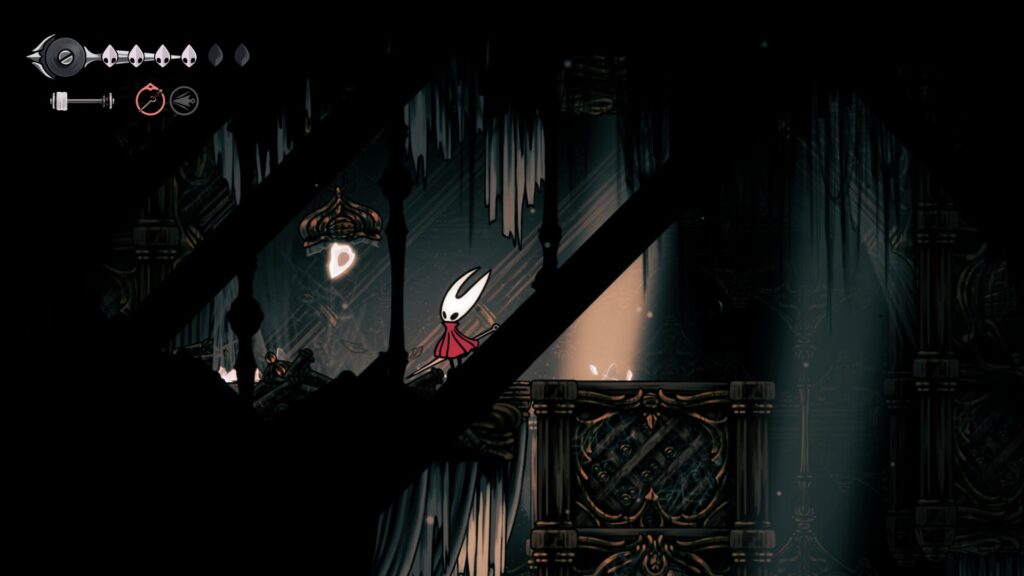 道中に通常では届かない段差がありますが、敵への下突き(Pogo jump)を利用すれば届きます。蒼白の油を回収しに行きましょう。